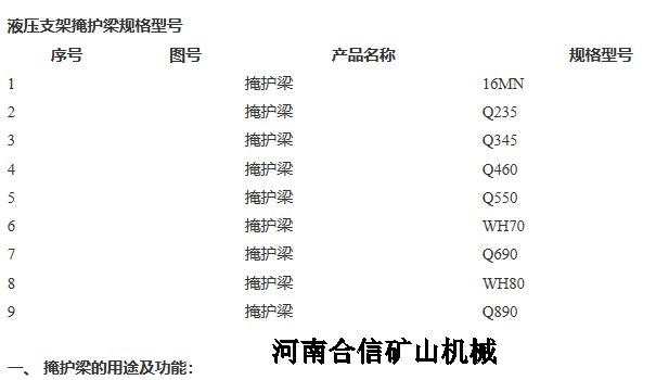 液壓支架掩護梁規(guī)格型號:
